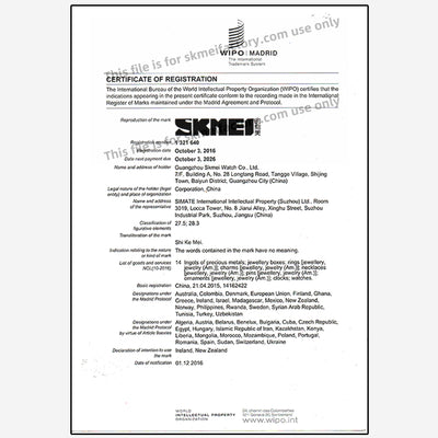 استكشف المجموعةشهادات تسجيل SKMEI العالمية
