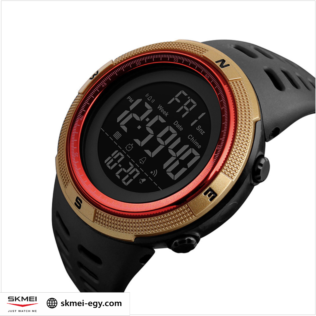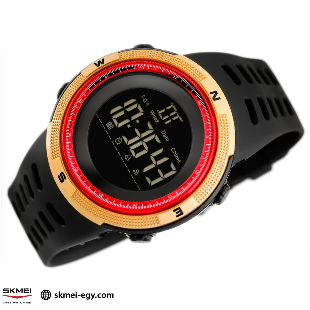 Skmei 1251 ساعة رجالي ديجيتال أنيقة اطار احمر ودهبي