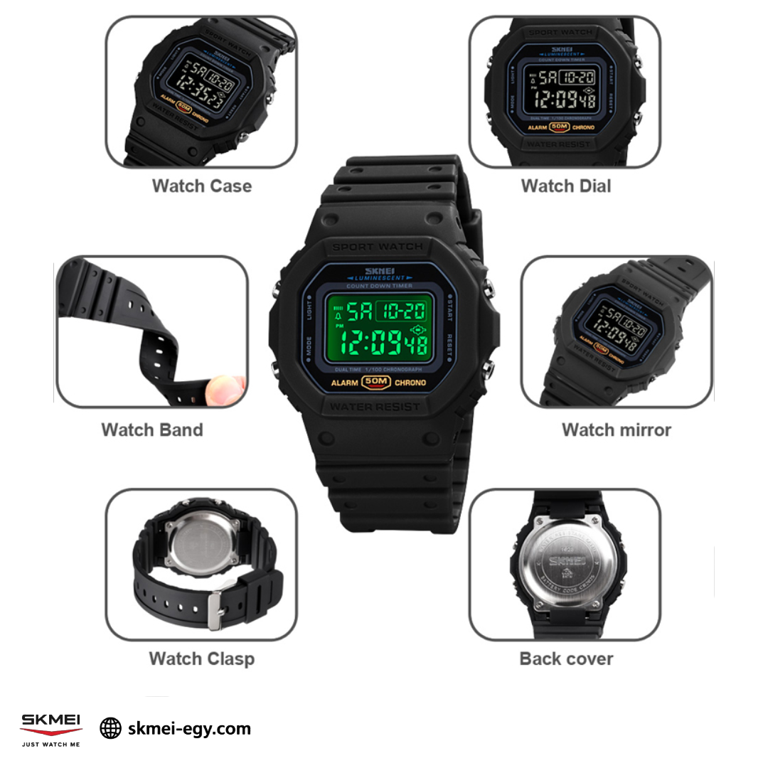 ساعة سكيمي 1628 رقمية رياضية (أسود&أسود)